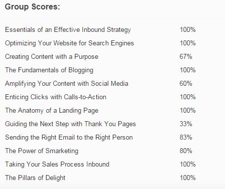 Stolt som en tupp presenterar jag min inbound marketing-certifiering. Det krävdes att jag svarade rätt på 75 procent av frågorna, mitt resultat blev 87 procent.